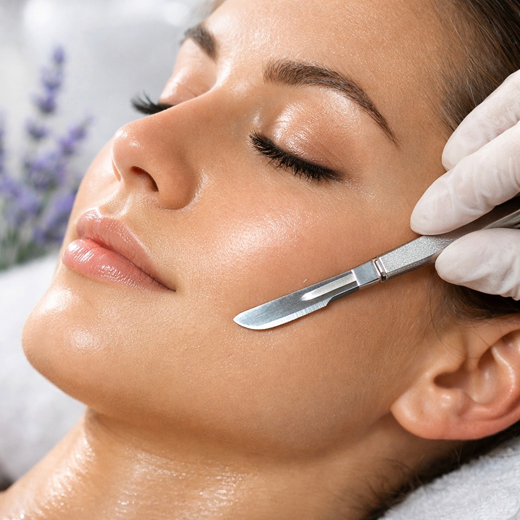 A gentle, non-invasive exfoliation treatment that removes dead skin cells and fine vellus hair (“peach fuzz”) using a sterile surgical scalpel.